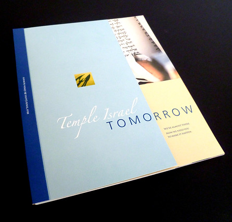 Temple Israel’s Tomorrow Campaign raised over $17 million. These funds ensured the continued development and implementation of their spiritual, religious and educational opportunities and social justice work. It also allowed Temple Israel to modernize their building to accommodate worship services, special functions and celebrations in the lives of their congregants and community. The campaign brochure focused on displaying the Temple’s diversity and rich history to revitalizing their congregation’s commitment to Temple